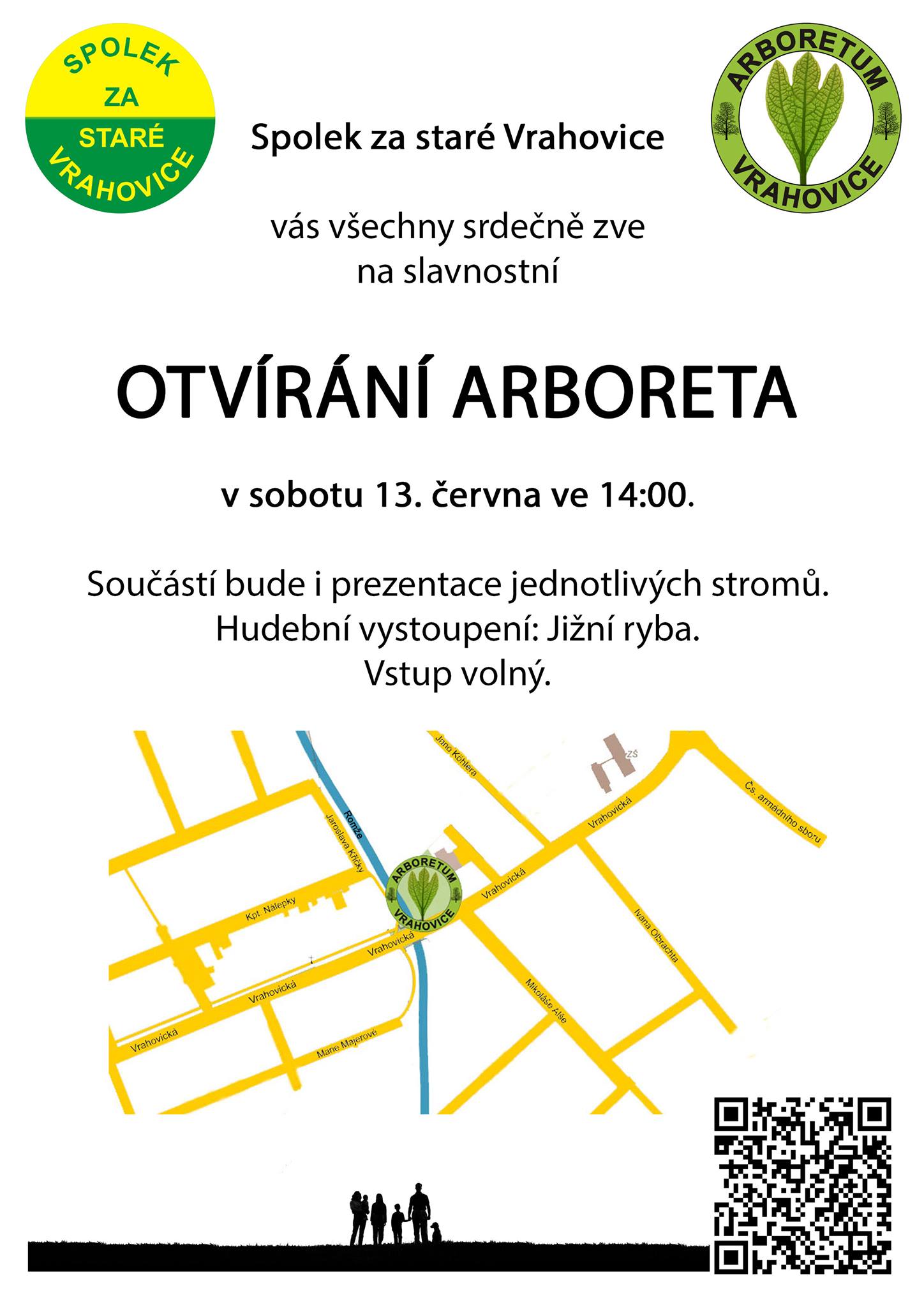 V sobotu 13. června odpoledne se konalo slavnostní otvírání Arboreta Vrahovice. Akci zahájil předseda Spolku za staré Vrahovice Tomáš Peka, který ve svém projevu nastínil vznik arboreta a poděkoval všem, kteří při realiazci projektu pomáhali. Po projevu následovala hudební produkce kapely Jižní ryba. Lidé měli možnost projít si arboretum s odborným výkladem.